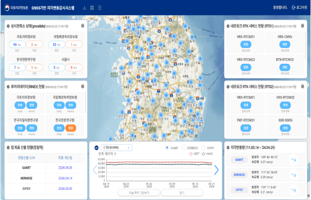 특히, 이 시스템에서는 연간 변화추세뿐 아니라 일 단위 계산결과도 확인 할 수 있어 우리나라 주변에 지각변동을 유발하는 강진이 발생하는 경우 국토에 미친 영향을 신속하게 파악할 수 있다.