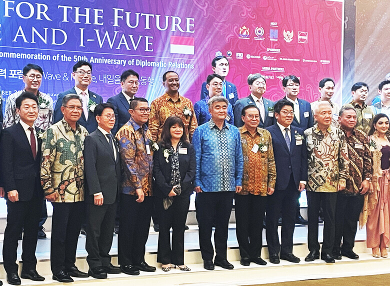 ▲한-인니 수교 50주년 기념 경제협력포럼에 참석한 정원주 회장이 기념촬영을 하고 있다.<사진제공=대우건설> |