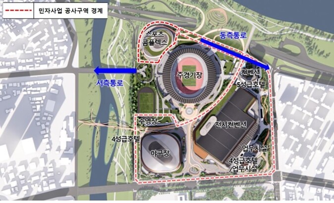 이와 관련해선 잠실 주경기장 관람객의 안전을 위해 봉은교 방향 서쪽 진출입로와 함께 잠실종합경기장 북쪽 부근 공사영역 조정 등으로 백제고분로 방향의 동쪽 진출입로를 추가로 확보한다.