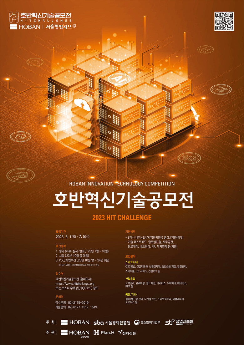 호반그룹은 ‘2023 호반혁신기술공모전’을 개최한다고 1일 밝혔다. 이번 공모전은 호반그룹(호반건설, 플랜에이치벤처스, 전자신문) 및 창업진흥원과 서울경제진흥원이 공동 주최/주관해 창업기업 지원 혜택을 크게 확대했다.