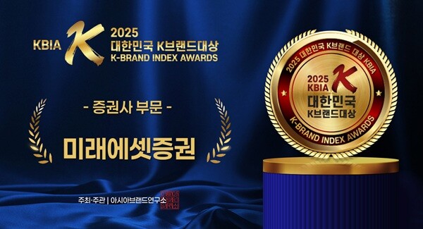 [한국건설경제뉴스=박동혁 기자] 아시아브랜드연구소는 ‘2025 대한민국 K브랜드대상’ 증권사 부문에서 미래에셋증권(Mirae Asset Securities)이 대상 브랜드로 선정됐다고 13일 밝혔다.